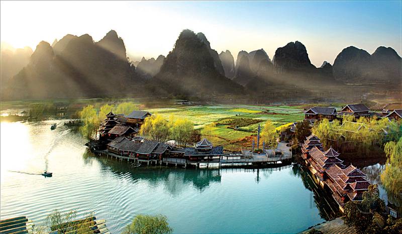 早餐后,7点乘车返回桂林,途中游览农家乐景区——侗家古寨观光村旅游(约50分钟)不落锁的大门见证了侗家人的信仰——萨崇拜:侗族家人不许偷;