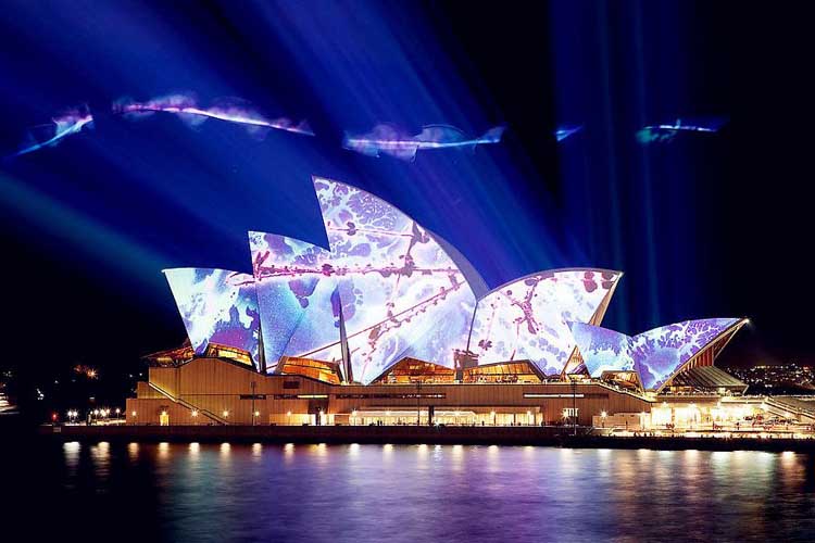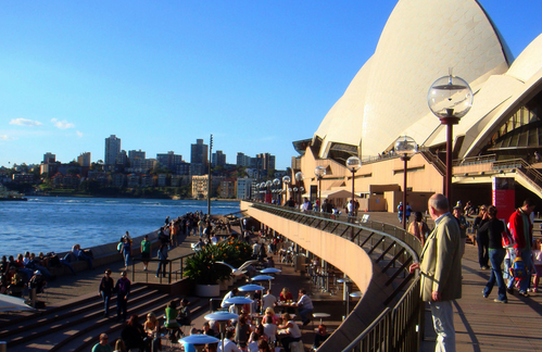 【悉尼歌剧院】(外观约 30 分钟)是澳大利亚全国表演艺术中心。又称海中歌剧院。它矗立在新南威尔士州首府悉尼市贝尼朗岬角上,紧靠着世界著名的海港大桥的一块小半岛上,三面环海,建筑造型新颖奇特、雄伟瑰丽,外形犹如一组扬帆出海的船队,也像一枚枚屹立在海滩上的洁白大贝壳,与周围海上的景色浑然一体。